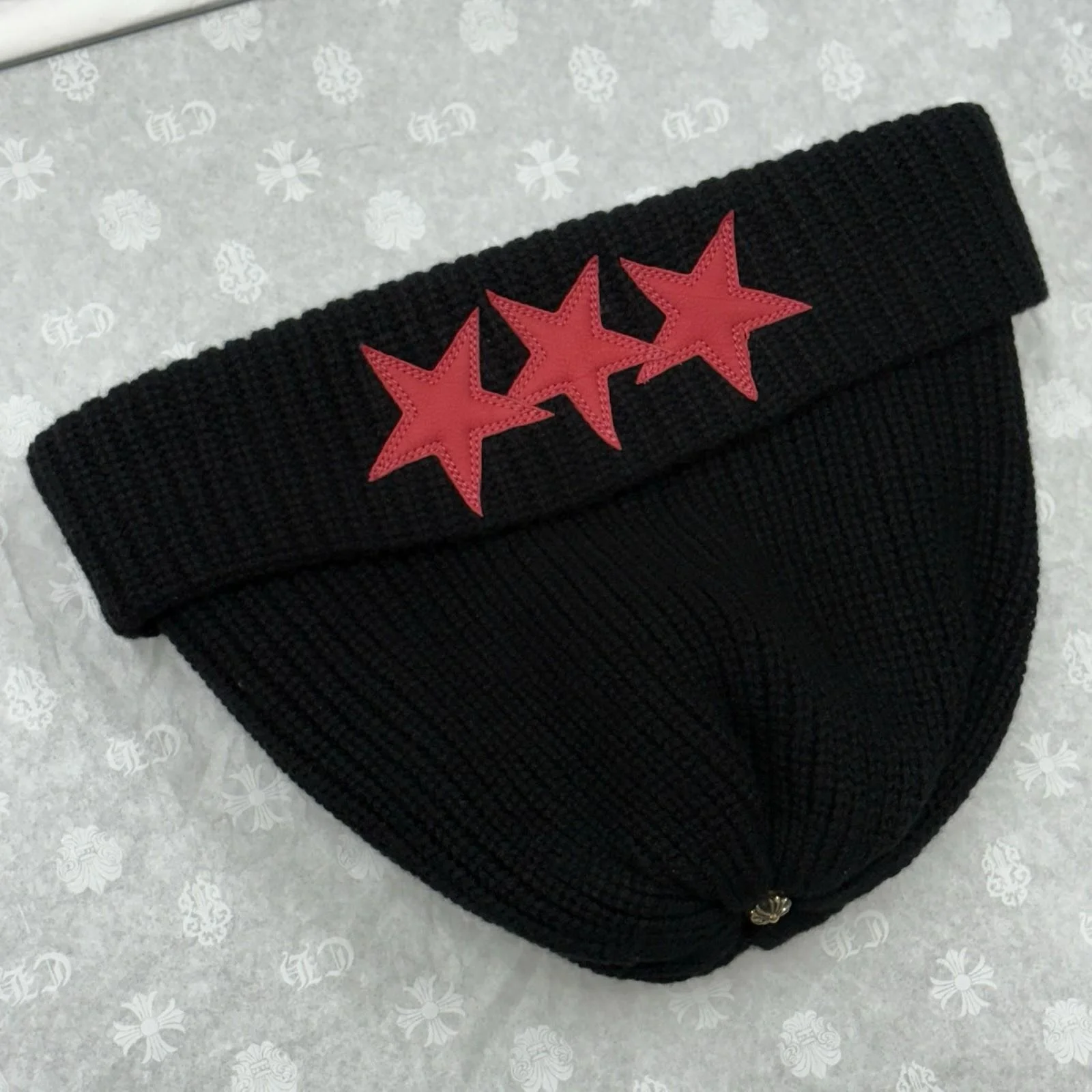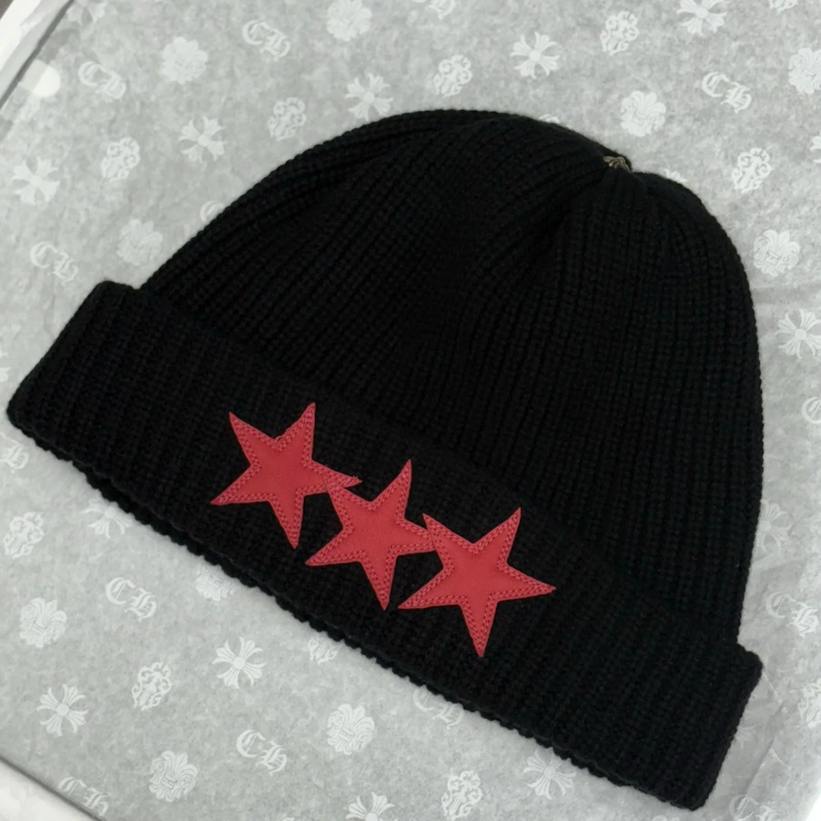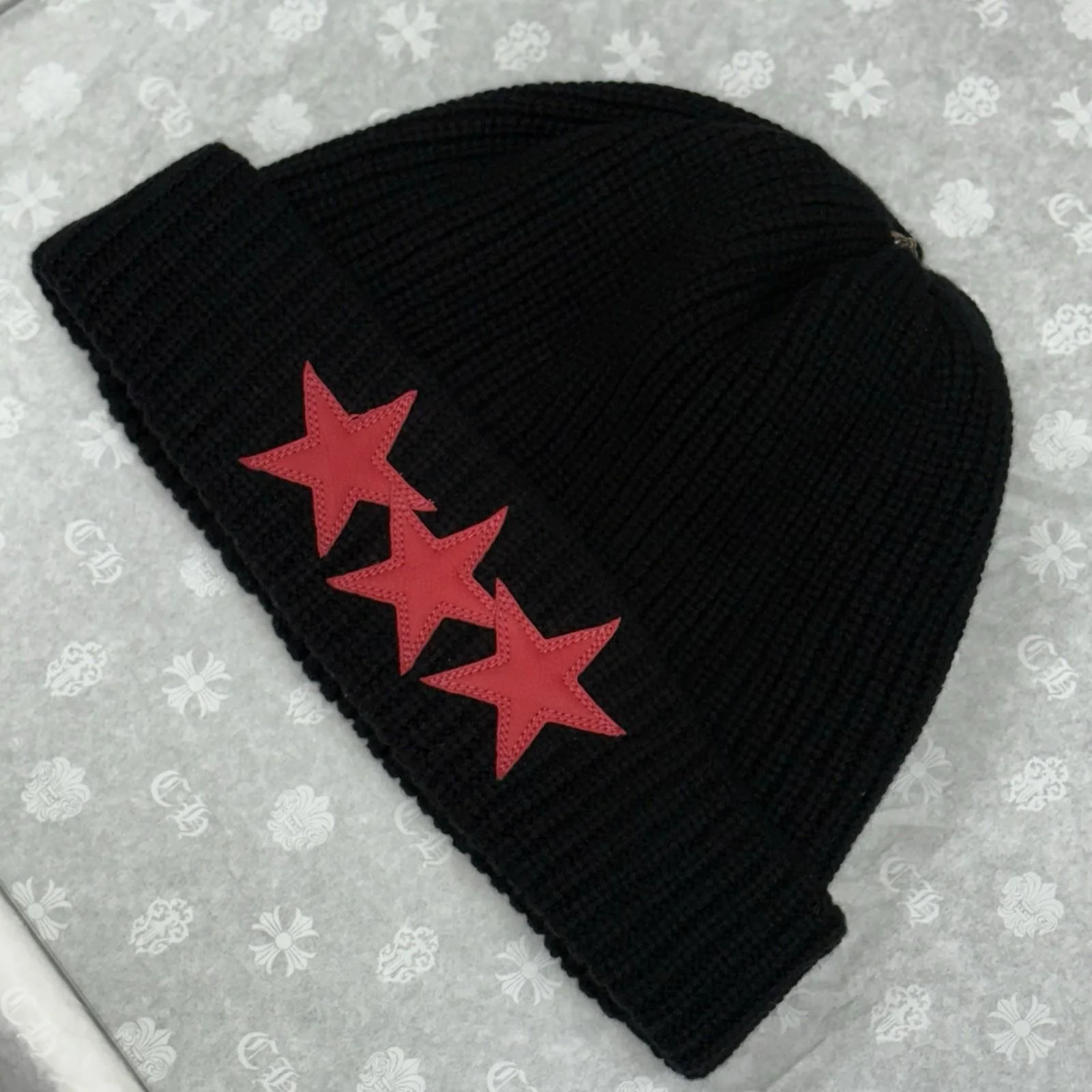 Chrome Hearts Triple Star Sludge Beanie ' Black Red ' | BRAND NEW!